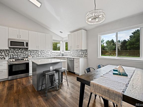 Tucked away on a quiet cul-de-sac in The Meadows of Castle Rock, this inviting home offers a great blend of style and comfort. The remodeled kitchen features white IKEA cabinetry with clever storage, sleek quartz counters, and a fresh new backsplash that adds a touch of personality. Luxury vinyl plank flooring runs throughout the main levels and bedrooms—making life a little easier and helping keep allergens at bay. With newer windows and fresh interior and exterior paint, the home feels crisp and well cared for. The spacious primary suite has vaulted ceilings, a beautifully updated bath with a large shower, and a roomy walk-in closet. Upstairs, the guest bath has also been thoughtfully updated and is beautiful. The finished basement adds even more flexibility with a bedroom, full bath, and a bonus room that works well as an office, playroom, or gaming space. Step out back to enjoy the large patio and yard—plenty of room for entertaining, play, or just relaxing.