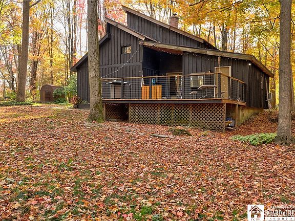 Discover the perfect blend of modern comfort and rustic charm in this beautiful contemporary cabin-style home. Set on approximately 3.5 private and wooded acres, this inviting retreat offers three bedrooms and two and a half baths with an open, airy floor plan ideal for relaxed living or entertaining. The home’s warm interior showcases striking wood beams, a large stone fireplace, and a cozy pellet stove, creating the perfect ambiance for every season. The spacious kitchen and living areas flow seamlessly together, enhancing the open-concept design. The updated kitchen features a large pantry and a breakfast bar. All the bathrooms have been updated. The primary loft-style suite features a private bath, walk in closet, and a small office—an ideal space for work or quiet reflection. One main-level bedroom includes a separate entrance and half bath, making it a perfect option for a guest room, home office, or studio. Convenient laundry areas are located on both the first and second floors. The exterior features a large deck, dog rum and a shed. Whether you’re relaxing fireside, working from home, or enjoying the peaceful natural surroundings, this home offers the best of both comfort and privacy—all within a stunning wooded setting.