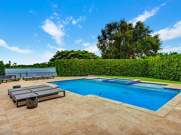 FABULOUS HUGE LAKE LOT! Offering tranquil lake views & tasteful contemporary renovations, this one-story home of 3 bedrooms & 3 baths offered furnished/turnkey is open & bright with plenty of windows. It features volume ceilings with crown moldings & extra high-hat lighting; Jerusalem marble floors with upgraded baseboards & neutral carpeting;custom closet design & window treatments. The Dining Room offers built-in shelves. The contemporary open island kitchen offers dark brown cabinetry & quartz countertops, stainless steel appliances & a lovely breakfast area overlooking the beautiful backyard. The bathrooms have been remodeled in contemporary design. The rear yard is spacious & pie-shaped offering an oversized heated pool with a spa & sun shelf and grassy area overlooking the lake!