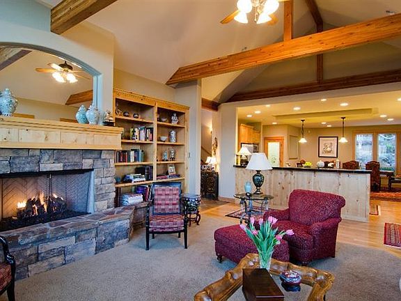 Custom luxury in every detail of this lovely 4 bdrm, 3,947 sq ft home. Arrive on a paver driveway into a spacious three car garage. Spectacular entrance invites you into the slate floor foyer. Step into the vaulted great room, music room, adjoining kitchen, dining for functional living space, all with open mountain views. Private office with separate entrance, and master on the main, with outside door to hot tub. Up the grand staircase to three large bedrooms, two full baths and large loft with balcony.