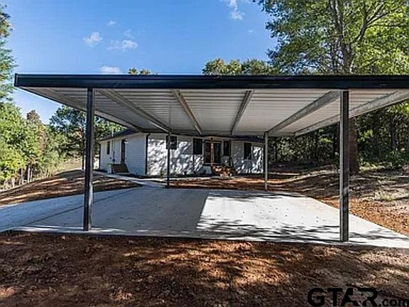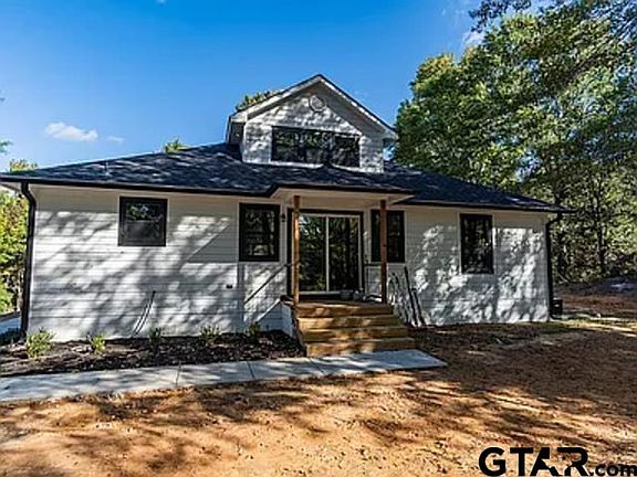 This home sits on a 5.237 acre tract of land on the back corner hill overlooking the wooded 5+ acres that is an amazing backdrop for this gorgeous 2300 sq. ft. home which has been completely remodeled into an industrial farmhouse style with beautiful white Hardie siding and features black trim and new shingle roof with copper accents. It is a 4 bedroom home with 3 baths. The primary bedroom can be upstairs or down. The home is loaded with all new cabinets, updated insulation and energy efficiency. Dimmable LED lighting, fireplace, hard plank flooring throughout and ceiling fans in all bedrooms and family room. Enjoy beautiful granite counter tops in kitchen and all baths. The center island is a custom antique white oak distressed piece to reflect the industrial farmhouse style. All black hardware and light fixtures to match the same style. 2 AC units, one on each floor. 200 sq. ft. front and back covered porches and a 576 sq. ft. open car port with sidewalk to house for easy access. There is a 480 ft deep well and aerobic septic system. Home offers seclusion, style and easy access to Dallas, Shreveport, Marshall or just to town through the rolling hills of East Texas Piney Woods to Longview. It's located in popular Hallsville ISD. Don't wait...this is a must see property!