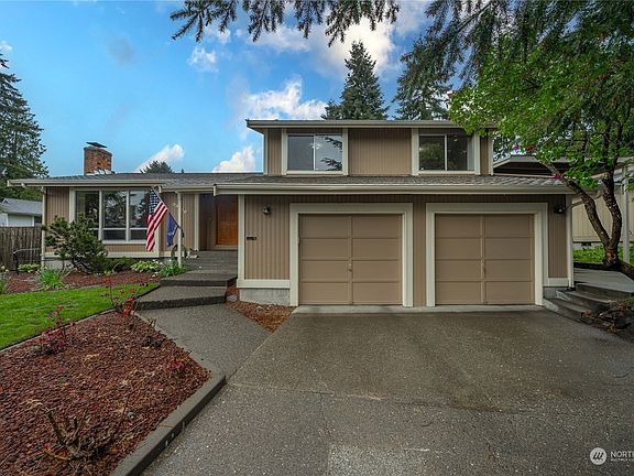 This tri-level 3 bedroom, 2.5 bath 1,910 sqft home is located on a quite dead end street just steps away from Brigadoon elementary school. The primary bedroom serves as a personal retreat, complete with a private bathroom, a spacious walk-in closet, and an exclusive deck featuring a covered hot tub. The home accommodates your storage and parking needs with a generous 2-car garage, complemented by additional covered parking space ideal for your RV or boat. Outdoor living is elevated with a large back deck with a gas line for outdoor cooking or space heater and a fully fenced yard with fruit tree. Tall vaulted ceilings in the living room with a wood-burning fireplace. Complete with formal dining room and a breakfast nook.