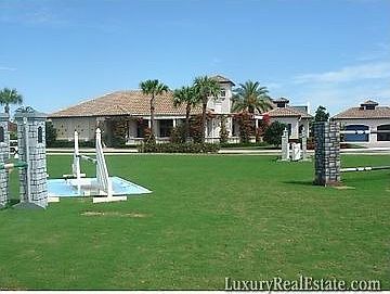 A Spectacular, turnkey property designed by an architect and custom built on 5.88 Acres with entrances into Grand Prix Village or the horse show. 16 Stall barn includes an office, lovely tack room with kitchen and laundry room. Several turn out paddocks, a Grand Prix field with water jump. All weather ring and sand track surrounding both. A breezeway leads to the owners suite featuring 2 bedroom 2 baths with large entertainment room, including outdoor entertainment room and kitchen. Marilyn Rabbitt 561-776-4555