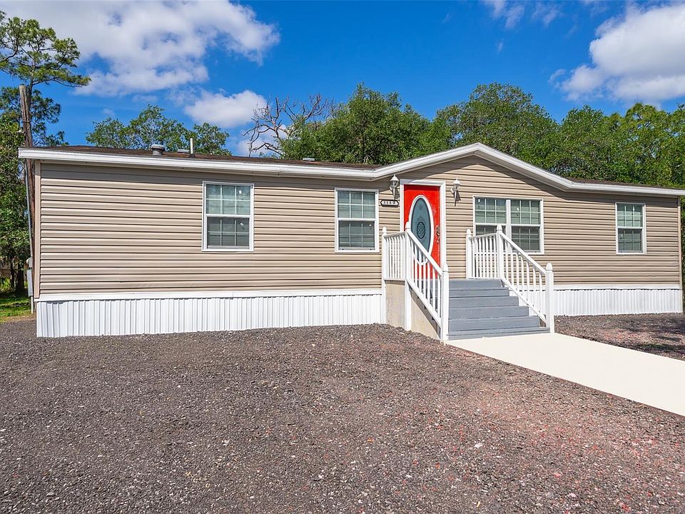 Good opportunity! Move in before the end of November, credit half month rental. This property is located 30 minutes away from Orlando International Airport, 18 minutes away from Lake Nona Medical City, 45 minutes away from Melbourne Beach, 35 minutes away from Disney Springs, Disney and so much more. This property features a large and spacious outdoor area with almost FIVE ACRES. This manufactured home was completely remolded. SO MANY UPGRADES ALL NEW windows in the entire house, new doors, New floors, New Kitchen, New bathrooms, and all the sheetrock was completely redone to the entire house. New Insulation saves you on electricity, new baseboards all new hardware. New water heater, all new lights, and fans. New driveway upon walking up to the property with a beautiful staircase and freshly painted. Water softener installed and a completely rebuilt Well. New plumbing is all over the house. Some features include a small pond just in front of the property which is also fenced. DON'T MISS OUT ON THIS GREAT OPPORTUNITY! NO WATER BILL! Energy Efficiency Home!