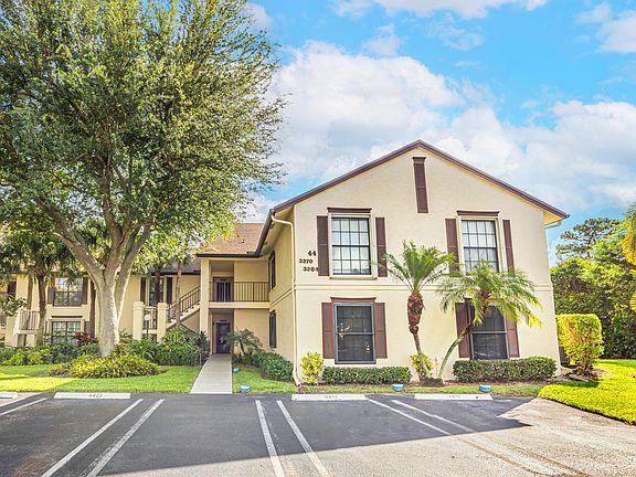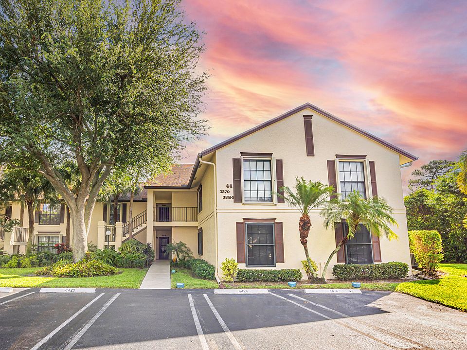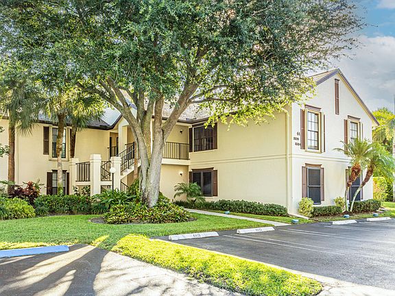 Welcome Home! This spacious first floor, three-bedroom, two-bathroom condo is in Park Pointe's 55+ resort-style community. Conveniently located minutes to a Publix Plaza with plenty of restaurants, 15 minutes to the beach, 20 minutes to PBI airport & 12 minutes to the Wellington Mall. Park Pointe offers a lovely clubhouse, saltwater pool, a fitness center, tennis, bocce, and 8 fountained ponds for a wonderful view during an evening stroll. The corner unit is light & bright with extra windows. features a split floor plan with the primary bedroom attached to the large screened-in patio with garden- views, Granite Countertops, an eat-in kitchen, plantation shutters, and tile in the common areas. - Roof 2023 | AC 2019 | Water heater 2020 | Full hurricane protection |