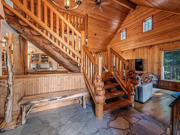 Absolutely incredible home and property on the south end of Cougar Gulch offers you peace, quiet, and privacy without being isolated in one of the most desirable areas just outside of Coeur d'Alene. Nestled on a serene & useful 9.97 acres with breathtaking mountain views, tall timber, open pastures, and a spring-fed pond. The home offers rustic elegance & attention to detail with hardwood & tile floors throughout, custom log staircase, tongue and groove ceilings, new granite countertops and stainless appliances, fully custom hardwood cabinets, interior doors & millwork, a newer Quadrafire wood burning stove, new vanities and toilets in both bathrooms, and more. The walk-out basement was finished in 2022 as a full apartment with its own PRIVATE entrance, outdoor living space & separate parking space and is ideal for MULTI-GENERATIONAL living or a VACATION RENTAL! It offers Nutone 3-zone heated tile floors, electric fireplace with live-edge mantle, gorgeous kitchen with quartz counter tops & Bosch stainless steel appliances, stacked washer & dryer, stunning bathroom with large walk-in shower + rain shower and dual vanity, one non-conforming bedroom (no window) with a large walk-in closet. This apartment has been a successful vacation rental. Outside you'll find a covered front patio with log porch swing and covered side deck that are great for entertaining, oversized two-car garage with an attached one-car carport / covered storage area, 3 fenced in pastures for your livestock along with a shelter, large fenced-in garden, and a pad for parking a boat or RV. The trees and underbrush around the home have been trimmed and well-managed. No CCR's or HOA.