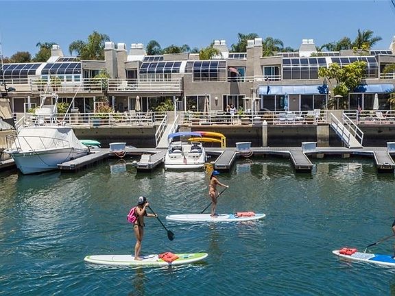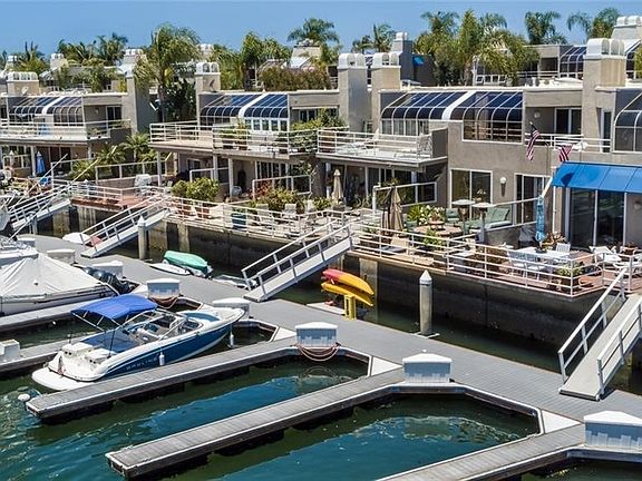 Exquisite Harbour Views from this lovely Huntington Harbour Seabridge Condo. This property has a 30 foot boat dock, and has many gorgeous upgrades. The kitchen has been totally remodeled (2014) and attaches to the 2 car garage. The flooring is travertine and hardwood. All three bathrooms have been elegantly remodeled with quality and designer detail. The view from the master bedroom is fabulous! Both bedrooms have walk in closets and the guest bedroom is used as a library/den and has an enclosed patio for a generous office. The back deck is stone and perfect for relaxing! The community includes a clubhouse, tennis and a pool/spa. There is ample guest parking and a bay beach just a short stroll away. This is a perfect place to watch the boat parade - front row seats!!! The spacious Boat dock will fit at least a 35 foot boat.