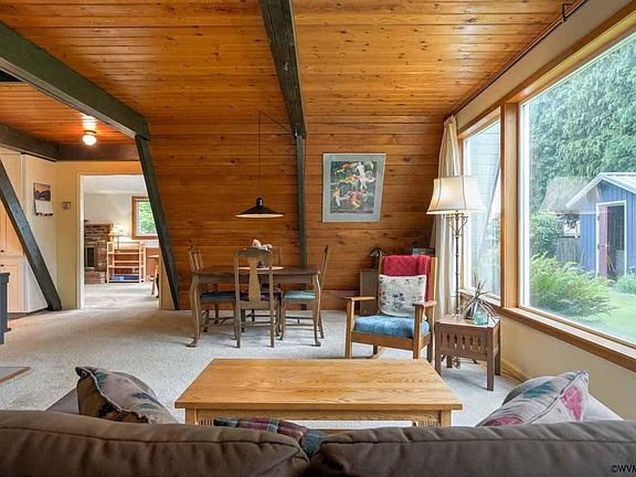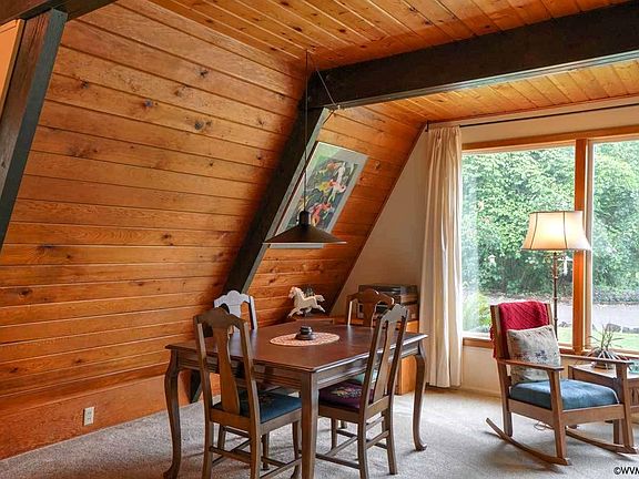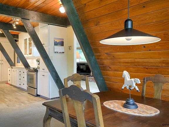 Accepted Offer with Contingencies. Personality Here! Beautiful property with A-frame home on nicely landscaped. 1.12 acres. New chic kitchen with new appliances, quartz & copper counterstops. Upstairs bedroom has two sleeping areas/could be 4 bedrooms. Master bedroom & baths on 1st floor. Barn style garage/shop has storage area & pellet stove.