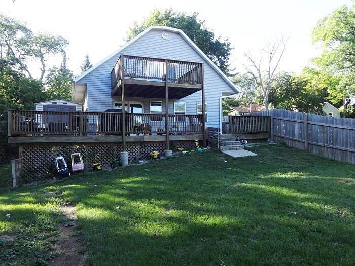 Beautiful private beach, park, playground, and basket ball courts at only 25.00 per year! Two bedroom home with updated kitchen and full bath. An open floor plan with a large loft bedroom. Double deck with patio doors on both levels perfect for relaxing and watching the 4th of July fireworks! A large fenced corner lot offers plenty of recreation and cozy fires! All appliances included.