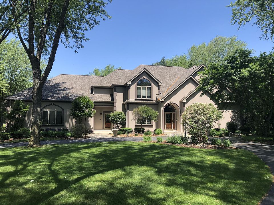View our 3D visual tour and walk through in real time from your smart device or pc!!Gorgeous executive home on dead end street. Spacious open living space makes for perfect entertaining. Oak trim package w/ 4-piece crown molding, 6 panel doors & gleaming HW floors grace much of 1st flr and upstairs hallway. Custom kitchen cabinets, blue pearl granite counters, dbl oven, desk space, huge breakfast island w/ cooktop, massive W/I pantry/small appliance storage & more. 2-story great room w/ 21 ft ceilings, no-mess gas fireplace for cozy winters, custom window treatments & plush carpeting. Sep formal dine adjacent to kitchen & heated sunroom. Main floor laundry w/ folding counter, clothes rack & adjacent 1/2 bath. Office on main floor w/ built-ins & granite. Finished basement is amazing.