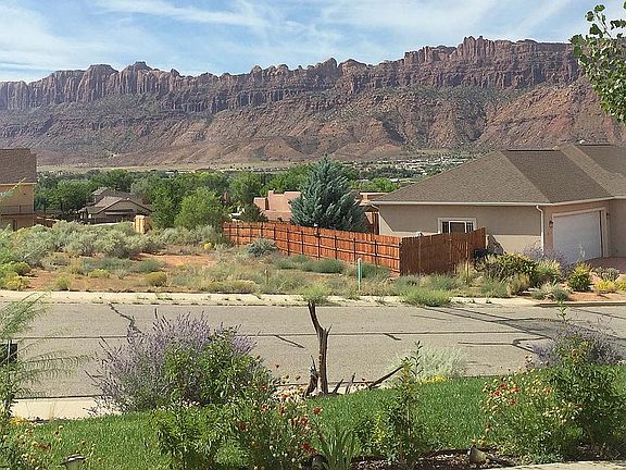 BIG VIEWS Lovely home set in a quiet neighborhood near the Moab Golf Club with BIG views! You will love the sweeping panorama of the La Sal Mountains, slickrock fins of Mill Creek, the green of Spanish Valley, and the red rocks of the Moab Rim – enjoy the spectacle from your relaxing front patio. The home is welcoming, with a great open design, vaulted ceilings, and wonderful natural light. The Great Room design features a spacious living room with gas fireplace, and patio doors leading to a large redwood deck with pergola for perfect indoor/outdoor living. There is a bright and open dining area framed by bay windows, which flanks the large kitchen. Rustic knotty alder cabinetry was custom-crafted, and the space features an excellent work flow and great natural light. Step down the hallway to the Master Suite, with beautiful new bamboo flooring, a spacious walk-in closet, and en suite bath with separate tub and shower. There are two additional bedrooms and a second full bath on the main floor. Take the staircase down to the wonderfully finished basement and you will find tremendous additional living area to enjoy. Comprised of a large family room/entertainment room with gas fireplace, two bright bedrooms, full bath, laundry/utility room, and storage area, the basement also features a separate entrance. The home is perfectly landscaped, with a great balance of xeriscaping and native flowering plants, along with lush, cool grass. The large, fenced back yard is an absolute dream, with a stamped concrete patio in addition to the deck, room for play, gardens, and more. There is RV/trailer parking, along with an attached, oversized 2 car garage. A beautiful home, ready for you to fall in love with!