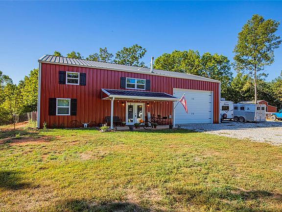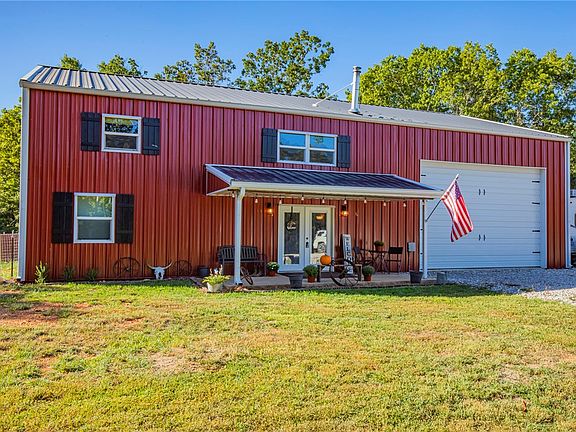 Beautiful (Built in 2021) Custom Country Styled 2 Story 2100SqFt All Electric Barndominium nestled on a picturesque 23.32 acres. 10 acres cleared & currently used for horses & the other 13+acres are a hunter's paradise w/several cleared areas for food plots. As you venture into the woods you will enjoy views of the abundant wildlife & peacefulness of the underground spring as it feeds into the creek. House features 1400sqft of living space downstairs that includes an Open Kitchen to the living room, Butcher block countertops, pantry, Wood Stove, Primary Bedroom/Bathroom, utility room & dog room. Up the wooden stairs you will enjoy an additional 700SqFt w/2 additional bedrooms, bathroom & second living room in the loft area. Massive divider wall made of real barnwood separates the attached 1000SqFt garage/shop which has 2 Overhead doors (12x18 & 8x9). Horse Barn 21x36, Hay Barn 12x30 & pond. 20ft covered front porch & 40ft covered back porch. Rural Water. Many more features that you will have to come to see!!