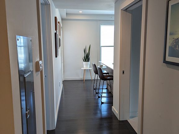 Jamaica Plain beautiful 3rd floor corner 2 bedroom 1 bath available now in a professionally managed, elevator building with a common roof deck! Great sunlight in this modern unit with a private balcony, central air and laundry in unit! Walk into your entry with a coat closet and generous laundry closet with tons of storage space! Bedrooms on opposite sides of the apartment. Sought after open concept kitchen/living/dining with direct access to the outdoor space. Quartz counters, stainless appliances and a breakfast bar. Recessed lighting and wood floors throughout, huge bathroom with double access doors. Easy access to the Green Street T stop! Rental parking and extra rental storage available. Sorry, no dogs. Fee Disclosure: First Month Rent: $2,800 Security Deposit: $2,800 Parking Fee: $250 / month (optional)