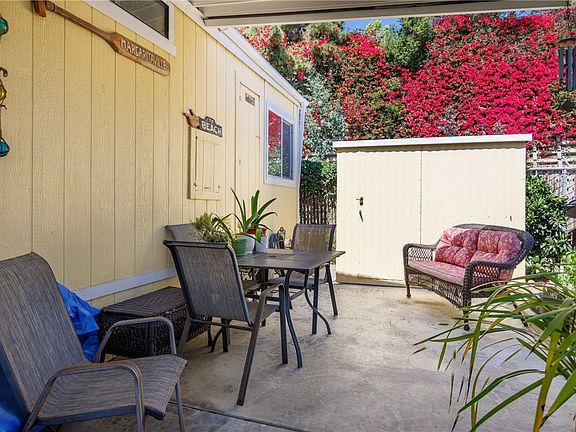 Seller willing to Carry with Large Down. This Adorable 1985 Silvercrest Beach Home has almost 1,000 sf. It is an upgraded 2 bedroom, 2 bathroom Home. Open Floor Plan with Cathedral Ceilings and added bar off Dining Room with lots of storage. Beautiful Laminate Floors, Dual Pane Windows with Blinds and Drapes. Kitchen has beautiful custom cabinets, granite counters, breakfast bar and all appliances are included (Bosch Dishwasher). Laundry off kitchen includes washer and dryer. This home showcases all windows, doors and floors with baseboards and casings. Both Bathrooms have been updated with granite vanities and shower doors. Guest Bathroom has step in shower with tile and security bars. Master Bathroom has soaking tub for relaxing and has shower too. Guest Bedroom has mirrored wardrobes and Master Bedroom has nice walk-in closet. There are ceiling fans throuhout for your comfort. There is NO SPACE RENT, only a low HOA of $369. Sit on your large expanded covered deck and enjoy your cocktail and enjoy the sunsets. The wide deck has recently been upgraded with new rails, awnings, and wide steps. The landscaping is easily maintained and has Orange, Tangerine, Lemon and Apple Trees. Lots of roses too! The covered carport allows for 2 cars to be parked and has an area for your patio entertainment. Make this your full time home or use it as your "Beach House." This senior park of only 61 homes is highly sought after due to its great location and low HOA. Close to Doheny Beach, Dana Point Harbor, San Juan Capistrano, Dining, Shopping, and Entertainment. Also close to freeway access. Make this Delightful home your own before somebody else comes along and scoops it up! For comp purposes, home next store sold 3 months ago for $350k. It was smaller, older, not upgraded like this one, only had one bath and no cathedral ceilings. This home has so much more and is priced right! Appointment only please and will need to be park approved.