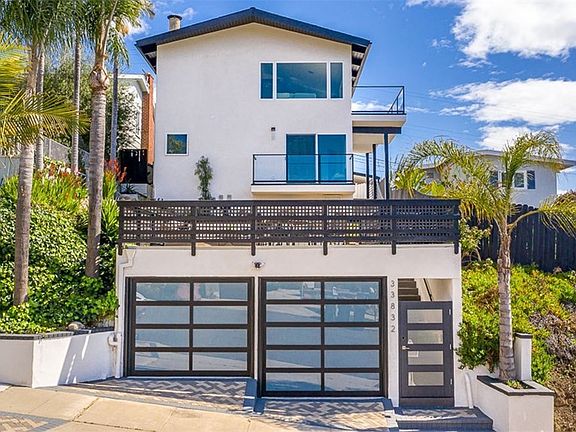 This spectacular ocean-view residence promises a living experience as stylish and opulent as it is comfortable and serene. Completely remodeled to offer a host of upgraded features, materials and finishes--including gorgeous white oak floors throughout, plus a statement fireplace that infuses the main living area with a level of elegance you'd expect from a five-star resort--the home spans a total of three bedrooms, along with a fourth room that's versatile enough to function as an office or a den. Framed by picturesque vistas of the sparkling ocean on the horizon, it showcases dramatic views from its open-concept living area and two outdoor decks--each of which provides the ultimate setting for entertaining family and friends or simply relaxing and taking in the sunset. Positioned just off the main living area to allow for even more stunning views, its gourmet kitchen is defined by luxe appointments, including appliances by Bertazzoni, sleek maple cabinetry, and Carrera marble countertops. With its clean lines, inviting flow, abundant natural light and captivating views, this home strikes the perfect balance between beauty and warmth--and with a two-car garage, as well as upscale additions like a tankless water heater, surround sound, Lutron lighting and internet, and paid solar, it complements its exceptional form with cutting-edge function.