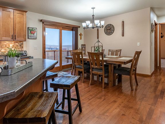 Spectacular oasis!!! Come view your new home today! Just minutes to town, this 3,136 sq ft ranch style home with 4.87 acres is a breath of fresh air! Enjoy panoramic views of the city off in the distance from your wrap around deck! This large lot is mostly fenced, and boasts established grass, beautiful trees and two fire pits!!! You will love this open concept Ranch style home complete with walk-out basement, three bedrooms on the main floor, and Master suite! Perfect kitchen for entertaining, it offers a huge island, beautiful tile backsplash, pantry, updated stainless appliances, pot filler and under mount lighting! The spacious master offers an oversized walk in closet and a generous bath with heated tile floors and dual vanity!!!