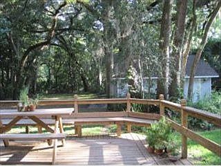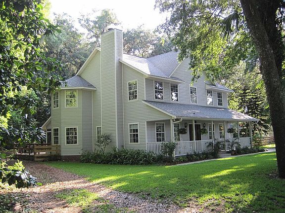 DREAM HOME IN THE COUNTRY! Custom-built, immaculate & one-owner 4bdrm, 3ba home amid gorgeous oaks w/ a 4-car garage, fenced backyard & no deed restrictions. The air-conditioned detached 2-car garage matches the house, is 20x24, insulated, w/ 100 Amp electrical service. Relax on the screened porch or grill on the wooden deck w/ hand railings for the enclosed look. Nice kitchen w/ breakfast nook, new appliances in 07, center island & granite countertops. Dining room w/ bay windows *See Brochure* (double panes) & the living room w/fireplace, wood floors & crown moldings. Great well water here, less than a mile from Pinewood Elementary, sprinklers for the yard, front porch with a swing & more! Re-roofed w/ architectural shingles in 08. Serene idyllic setting.