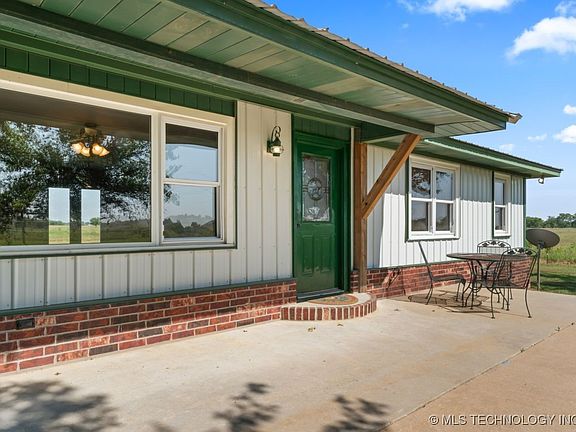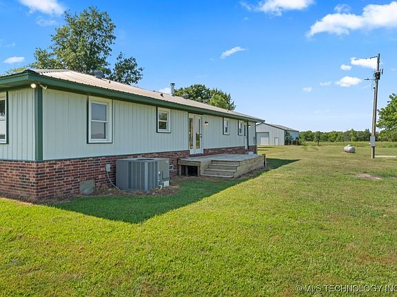 With spacious common rooms and classic wood paneling, the house is in great condition and ready for your updates. Relax on the large front and back porches, ideal for enjoying the peaceful scenery of wide open spaces, lush greenery, and wildlife. The partially fenced 5-acre property features a 2-acre cross-fenced yard, perfect for pets and gardening. A large barn/shop offers ample storage or workspace, with nearby electricity for easy connection. The property includes a large water cistern, storm shelter, and several concrete pads for additional structures. High-quality fencing surrounds the property, offering space to expand. There is also a large year round pond! With these amenities, the potential to go off-grid is within reach. Property is 20 minutes to Muskogee or Coweta and 30 minutes to Bixby.