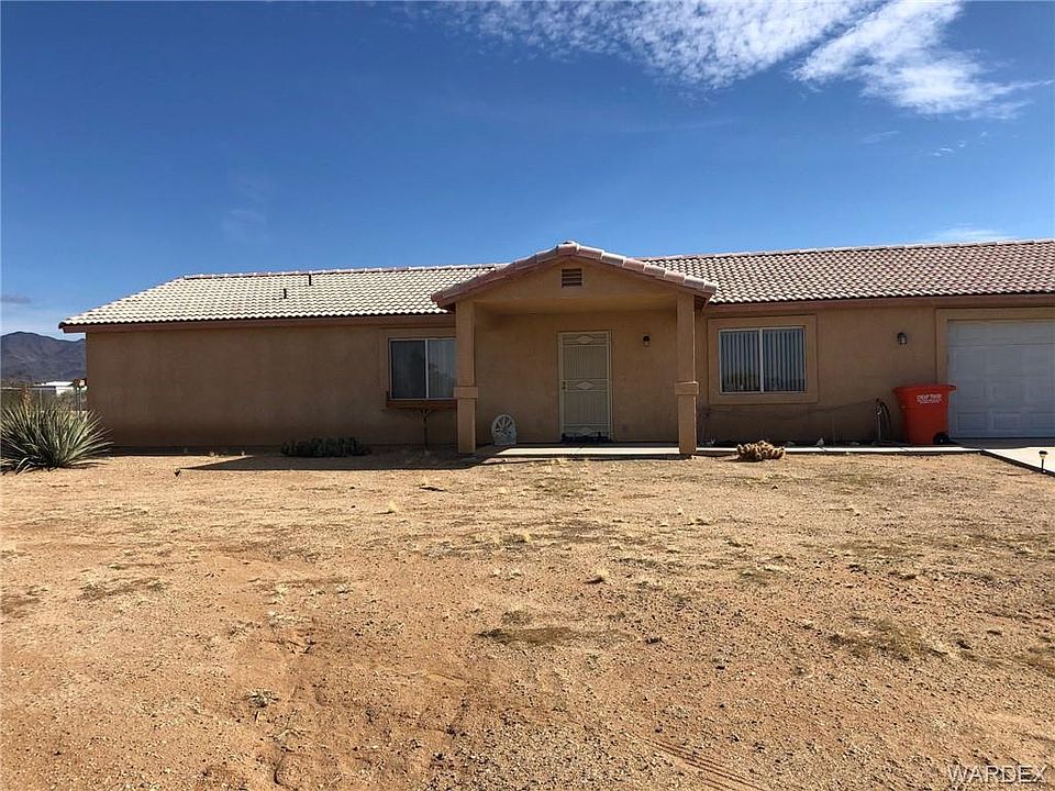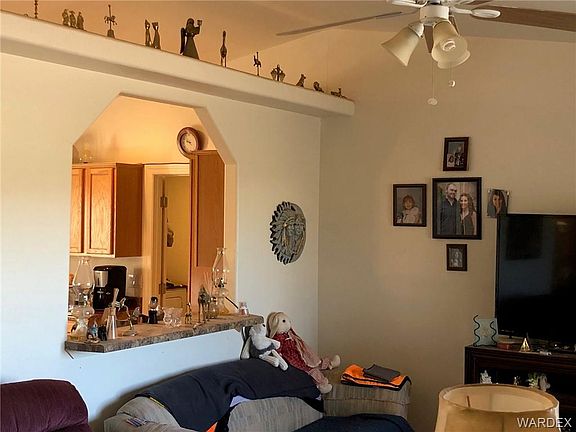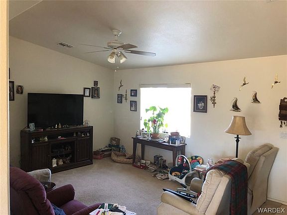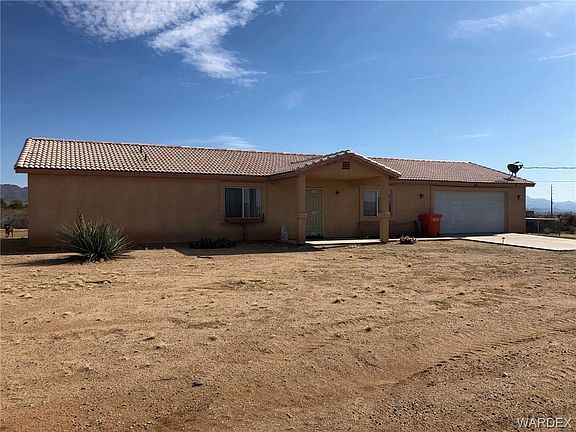 Cute 3 Bedroom, 2 Bath, 2 Car Garage. ALL electric home with professional dog fence around a part of the backyard. Extremely easy access a few feet off of Hwy 68 makes commuting to Kingman or Bullhead a snap for work. Much of the property is undisturbed desert so you could enjoy the buffer or build out whatever you may need on the added acreage. Beautiful views of the mountains in all directions in a really quiet part of Golden Valley. This property is a treat! Pass-thru between the kitchen and the living room, formal dining adjacent to the kitchen with a rear slider into the covered patio in the backyard. New trash disposal 2019, New water heater 2019.
