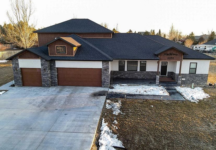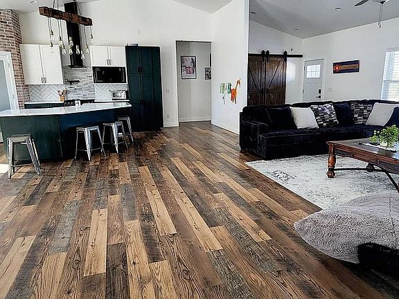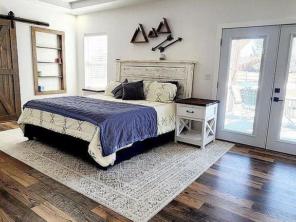 Experience the charm and spaciousness of this beautifully crafted home, situated at the end of a quiet cul-de-sac on over an acre of land. This sprawling family residence boasts a modern farmhouse aesthetic with luxurious touches and thoughtful design throughout. The expansive great room features luxury vinyl plank flooring, a vaulted ceiling, and an open-concept kitchen with a large center island (perfect for at least four bar stools), stunning quartz counters, a farmhouse-style sink, a spacious pantry, gas range/oven, and a big French door refrigerator ideal for entertaining and family gatherings. The split floor plan offers privacy and comfort, with two large bedrooms connected by a Jack-and-Jill bath, each with a private sink area and closet. On the other side of the living space is a guest bathroom with a whiskey barrel sink and a beautiful tiled shower. The big laundry room is conveniently located off the oversized 3-car garage. The luxurious master suite features patio doors opening to the rear deck and a spa-style full bath with a stunning tile and glass tub/shower area. The walk-in closet is enormous, providing ample room for all your storage needs. Upstairs, you'll find a huge family room with a kitchenette and a patio door leading to the upper deck perfect for entertaining or relaxing. There's also a "secret" fourth bedroom and a gorgeous fourth bathroom, making it an ideal guest or teen retreat. Throughout the home, you'll notice custom tile floors, tiled shower/bath surrounds, unique sinks, and fixtures, along with barn-style doors and distinctive lighting fixtures that add character and charm. Built with a micropile foundation and foam insulation on all exterior walls, this home combines durability with energy efficiency. The large lot provides plenty of space for a detached shop, RV parking, or future outdoor projects.