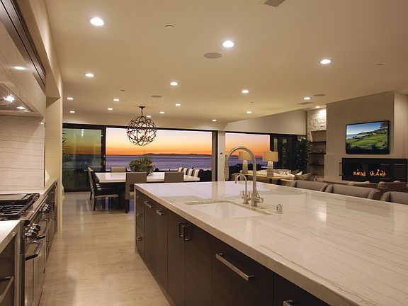 Stunning newly built modern designed home over 5,300 Sq. Ft. on a Large Lot of over 15,000 Sq. Ft. and 4 car garage. Dramatic high volume ceilings with spectacular skylights provide natural light throughout. Single-level living with large master-suite on the main floor with fireplace & impressive ocean views. An additional 2nd master en-suite plus media room upstairs with whitewater views makes this home truly one-of-a-kind. Spectacular custom gourmet kitchen opens to a seamless Great Room concept. Ideal for Entertaining! The innovative floor to ceiling sliding glass disappearing doors creates an indoor/outdoor living experience. An ocean view spa, 2 fire pits, & lush landscaping awaits you!