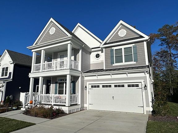 You can have it all with this barely lived in, Ultra-Modern, Energy Efficient Custom Built Schell Brothers Tidewater Landing home backing to Love Creek. The exterior wows at first sight with twin front porches and a 2-car garage. The Coastal Chic interior has a pleasing color palette hand selected for a soothing appeal and the wide-open concept floorplan is a dream. Premium Laminate Flooring adorns the Main Floor, recessed LED lighting throughout, a main floor Study, Laundry & Powder Room for convenience. The Great Room has soaring ceilings, a gas fireplace & a French door to the rear deck. The Gourmet Kitchen is the Centerpiece w/a superb Quartz topped Island, gorgeous glass tiled back splash, convection wall oven, refrigerator, microwave and gas cooktop. The attractive First Floor Owner's Suite with a serene view has dual walk-in closets and a luxurious bath with dual sink vanity, custom tiled walk-in shower, and soaking tub. Upstairs the picturesque Loft Area is a great casual entertaining space and is the impressive backdrop to the additional Three Generous Bedrooms & Two Additional Striking Full Bathrooms. One Bedroom has a French door leading to the upper front balcony. Two of the bedrooms have walk-in closets and one has two closets. For your storage needs there is gigantic walk-in unfinished space. The Landscaped Lawn has an irrigation system, and the entire yard is maintained by the HOA, paid for by the Owner. The Rear Yard borders the tree-lined waters of Love Creek where you can enjoy kayaking, canoeing, paddleboard & fishing, and has a private community launch. The Amenities are all encompassing and an ideal way to spend your time away from your home socializing or gathering with family & friends. The Owner is paying the HOA Fee for you to enjoy the Gorgeous Club House with Indoor & Outdoor Bars, Picnic Areas w/Grills, Social Seating Areas, Firepits, Pool Tables, Pickleball/Tennis Courts, Playgrounds, Swimming Pool w/Lounges & Umbrellas, Nature Trails, Walking & Jogging Paths all in a Pet Friendly environment. Nearby Bike Trails are available, and you will be only about 6 minutes from Downtown Lewes. This is a phenomenal place to live and love with all this beautiful home and Impressive Community will offer you. Book your tour today while the opportunity is here!