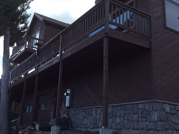 Home has been lovingly maintained. 1.59 ac. Enjoy fantastic foothill & city light views. Soaring cathedral ceilings! Update kitchen w/slab granite, custom tile, SS appls. Recent addition adds spacious mstr suite w/ 3/4 BA & Living rm w/windows galore. Dble sided rock FP nicely accents living to dining rm. 2nd BD + full BA, laundry complete mn flr. Large wrap deck right off kitchen/dining area. Upper lvl host 2 BD (one w/private deck & walkins). 4 bedrooms - use one as an office/craft room. 2 possible masters. BRING YOUR BIG TOYS! Attach 1.5 car w/workshop + detached 24'x46'RV garage fits 4 cars or RV, Boats, etc.(oversized doors are 10'wide x 13'tall), Wood sauna. Nicely landscaped. Large Storage rm under recent addition. Enjoy those city views! County Maintained Road. Close to Coal Creek Cyn amenities.
