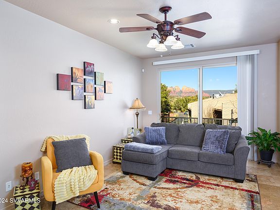 Captivating Red Rock Views Surround this Attractively Priced, West Sedona Townhouse. Upon Entering this Beautiful Two Bedroom, Three Bath Home, One Can't help but Notice an Open and Airy Feel, Provided by High Ceilings. A Bright Living Room Features a Gas Fireplace, Inspiring Red Rock Views and Patio. Overlooking the Living Room the Kitchen Offers Sparkling Granite Counters with a Breakfast Bar, and Ample Cupboard Space for All of Your Tools. Lovely Travertine Stone Flooring Flows Through the Living Areas and Bathrooms. There is Privacy for All with a Split Floorplan, and Two Primary Suites, One with a Balcony and the Other with a Lovely Patio and Red Rock Views. This Gem is Perfect for a Sedona Get-A-Way or as an Investment. Centrally Located, Near Nature Trails, Shopping and Restaurants