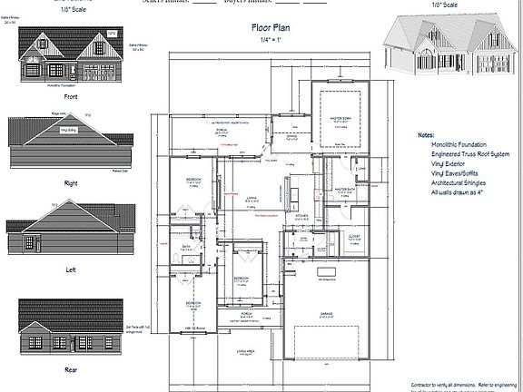 Dogwood 4 plan with 4 BR/2 BA's on .95 acre with NO HOA and NO RESTRICTIONS. This home will have a craftsman touch. The craftsman package includes an electric fireplace with shiplap and mantle shelf, barn door to the guest hallway, accent wall and crown molding in the Master bedroom, Riverside Interior doors, shaker style all wood construction cabinetry, wainscoting in the dining area and a craftsman style front entry door. This place also features LVP flooring throughout. In the kitchen you will find solid surface countertops, an island with breakfast bar and more. The Master suite has a walk-in closet, linen closet and double sink vanity. Estimated completion is end of August 2024.