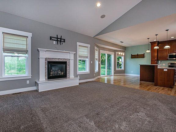 Quality construction in this brick-front ranch style home featuring custom-built cherry kitchen cabinets, island, granite countertops, stainless steel appliances, pantry and more. An open floor plan to the living room with a lovely stone/white-wood mantle gas fireplace. Spacious master suite with abundant natural light and beautiful master tile shower, dual bowl granite-top vanity and large walk-in closet. The walkout lower level boasts 10’ ceilings and a gorgeous granite wet bar with cabinets, refrigerator, tv hookup and built-in speaker system. Plus, an open layout family room with stacked stone electric fireplace and plenty of space to add a game table or additional seating. Also on the lower level, is not only a full bath with tile shower, but also a 4th bedroom, or office space. A 4-car heated/cooled garage with generator hookup, sink, workbench and more offers additional amenities. Plus, a large storage shed and playset off the beautifully landscaped spacious private backyard with mature trees, small fruit orchard, raspberry patch and more. Stamped concrete patio. This 4-bedroom, 3.5 bathroom, 4-car garage home is situated on a .40 acre lot within the city, perfectly located with easy access to any area of town. Shown by appointment only. *Other is the secondary living room in LL. All room measurements are approximate.