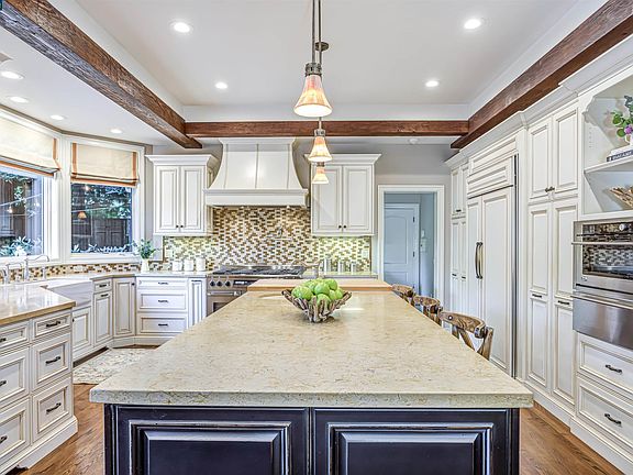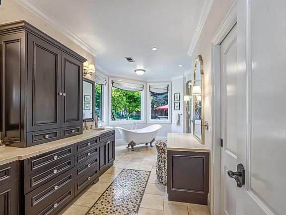 Tucked back behind Baywood’s manicured gated entrance, this remodeled one-story home (with a bonus room located upstairs), offers the perfect blend of luxury and function. On .53 acres and sprawled across an impressive 4,249sf, this five-bedroom, three-and-one-half bathroom home has a flawless floor plan with primary ensuite, three additional bedrooms and two bathrooms located on the same wing. Spacious owner’s retreat with a spa-like bathroom including a steam shower, claw foot tub, walk-in closet, and inviting fireplace that overlooks the backyard. Wonderful formal and informal living spaces including a dining room, living room, kitchen/family room combo, and a playroom perfect for multigenerational living. A remarkable Chef’s kitchen with an oversized island with seating for four, a built-in breakfast nook, custom cabinetry, limestone countertops, six burner built-in Décor range, two dishwashers, farm sink and prep sink, warming drawer, pot filler, drink fridge/bar area and custom wood beams.Easy Californian living with a kitchen and family room that flow seamlessly into a sparkling pool and spa, outdoor kitchen, grassy play area, gas firepit, and idyllic hill views. LAFAYETTE SCHOOLS