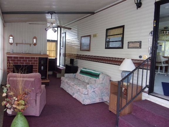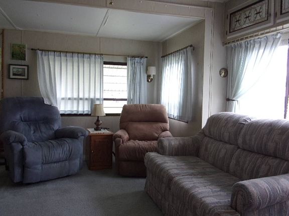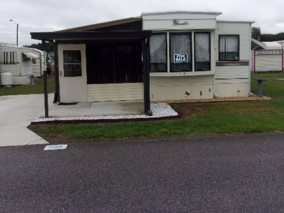 Located in a 55+ Community on leased land. This is a clean and very well-maintained home that is priced to sell. Furnished including a sofa bed for your extra company. Separate bathroom without a walk-thru to get to the bedroom. Chattahoochee flooring in the Florida Room with a carpet cover. There is a 2015 AMS Roof-over and an outdoor entry to a shed. Great porch views and a double driveway.