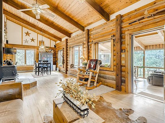 This home is the definition of mountain living meets privacy. Watch Elk and deer roam in your own 1.12 acre backyard! Keep and harvest the corn, strawberries green and red peppers, beans, tomatoes, jalapenos, lettuce, pumpkin, squash, and zucchini gown in the green house and outside garden. Need a place to store your ATV's, dirt bikes, or other toys? This home has an amazing workshop/garage with refrigerator so you never have to leave! Enjoy nights by the built in fire pit, and relax on the newly poured back patio as you watch the sun set, and the wild life play. As you enter the property you will be greeted by a 28' front deck, perfect for your morning coffee. From the deck you will find a natural light flooded sun room that is heated for year round use, perfect for any occasion, next enter into the vaulted great room with exposed log for that beautiful rustic appeal. The kitchen was updated with granite counter tops and slate stainless steel appliances and an oversized pantry! Downstairs you will find another living area, great for kids or guests with two large bedrooms and a full bathroom. The whole home water filter provides delicious drinking water throughout the house. Off of your back patio you will find an oversized shed to store anything you can think of, a play set with tent swings, a sandbox for the little ones, and a dirt bike track! Being a resident in the neighborhood also includes access to two fishing ponds, which are turned into skating rinks in the winter!