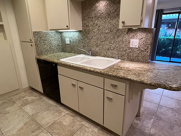 One bedroom, One bath condo. Unfurnished. Freshly painted. Porcelain floors throughout condo. Granite countertops in kitchen. Pool and jacuzzi on site. One covered parking spot only.
