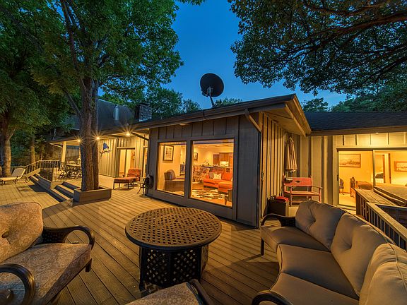 Fabulous lakefront home in ''The Coves'' a beautiful 18 hole championship golf course. Enjoy huge grand lake views, spacious deck all across the back, multiple sitting and entertaining areas. This beautiful home features spacious open floor plan, wood burning fireplace, hand scraped oak floors, custom built-ins, onyx floor, 9' ceilings, hand trowelled walls, granite counter tops, Alder cabinets and many more special features. Ranch style home features single level perfect for entertaining both inside and outdoors. Amenities include gated 24 hr security, 18 hole-Par 72 course, 16 ac practice facility, pro shop, club house, pool, tennis & pickle ball courts, Cherokee Yacht club is a golf cart ride away. Great place to rent a boat slip. HOA $210. month.