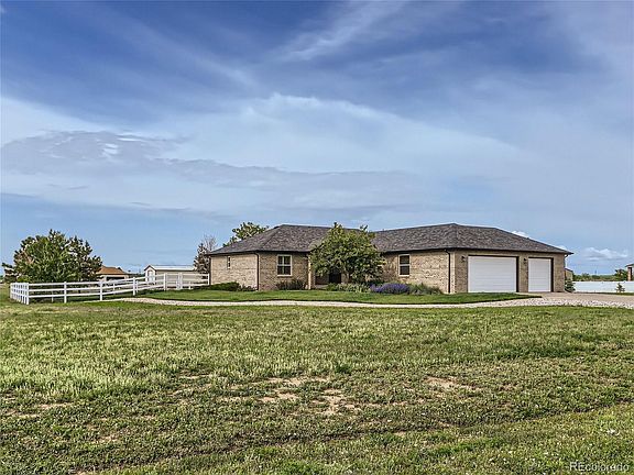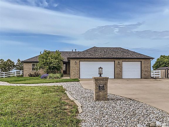 Looking for a place to escape the city but still be close enough to enjoy city amenities? Located South of I-70 with a 30 minute commute to Denver, and expansive views of the front range. This house has it all. Beautifully landscaped yard enclosed by pristine white vinyl fencing and front and rear sprinkler system and enclosed garden beds. The backyard is perfect for entertaining under the covered patio, and boasts a 1500 sqft workshop with concrete floors, 220 volt electrical perfect for RV storage, car enthusiasts, or home based businesses. Inside the home you will find beautiful Acacia wood flooring throughout the living space and kitchen. The kitchen offers a convection double oven, gas range. The primary bedroom has a beautiful accent wall and an on suite bathroom with a jetted tub and steam shower. The basement is finished and has expansive ceilings that are open and inviting. This home has been meticulously maintained with a new well pump installed in 2022, new roof gutters and paint in 2020, and new HVAC in 2022 The seller is including a riding mower, walk behind mower, outdoor fireplace, composter, dethatcher, swing set, and the garage refrigerator. This home offers all the benefits of country living and many more.