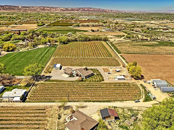 This 16.45 acre farm in Palisade has it all! Views of Mt Garfield with a Beautiful 3808 square foot house, three-car garage, shop, and a forth garage in back all attached to house. A Fujitsu Air Conditioning and Heating system is throughout the house, which was recently installed. Included on the patio is two stone sculptures by locally famous artist, Lyle Nichols. Also, on the property is an 1800 square foot shop with solar system on roof and cooler inside shop to keep fruit fresh until selling time. The peach orchard has 3000 peach trees with a micro jetted irrigation system. Four acres of field is planted in hay. To the far west side on the farm in the draw is very private and secluded Pond that draws wild life. All the equipment stays to make it a true turn key operation.