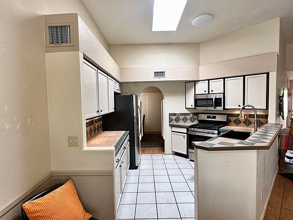 Corner lot gem in desirable Town & Country with mountain views! This townhome stands apart with no shared walls (except the garage). Inside, discover high ceilings, open layout, dual pane windows, plantation shutters, and an abundance of natural light throughout. Kitchen boasts GE stainless steel gas stove, Kenmore refrigerator, microwave, and stylish under-counter lighting. The covered patio is a private oasis featuring mature landscaping, 7-foot privacy wall, living ocotillo fence, dog run, and unobstructed views--an entertainer's delight. Owner suite features two closets, including a walk-in, and an ensuite bathroom with dual showerhead. Adjacent to the notorious Loop, shopping, dining, and more. Bonus, this home is right across the street from the community pool and ample guest parking