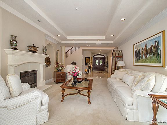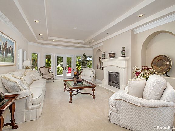 Highly upgraded home tucked away at the end of a private cul-de-sac in sought after Country Rose. This fabulous home imitates single story living with all living areas including the master bedroom, office, and 3 bedrooms on the main floor. Newly redone gourmet kitchen opens to a great room with custom built-ins and a built-in bar. Custom glass and wood combination double front door leads to an entryway with gorgeous marble with designer inlays, roman style columns. Formal living and dining room offering a tasteful blend of crown molding, coffered ceilings and elegant lighting. Great room offers a cozy fireplace, beautiful wood flooring and custom built-ins. Gourmet kitchen featuring a Center Island, granite counter tops and state of the art appliances including a 6 burner gas stove. Escape to the master bedroom suite embracing vaulted ceilings, custom shutters, and French doors opening to the backyard plus a private loft with a romantic fireplace. Royal master bath surrounded by marble flooring, granite counters, vaulted ceilings, his/her sinks, and a built-in vanity. Serene backyard with flourishing trees, cascading water fall, fire pit, fireplace, built-in BBQ and multiple seating areas. Countless features include two energy conserving solar systems, water conserving plumbing fixtures , 3 downstairs bedroom suites, an ideal home office with wood flooring, custom built-in desk and cabinetry, 4 car garage with room for RV parking and low maintenance grounds. Private backyard with cascading water feature, built-in fireplace, built-in BBQ, multiple seating areas, and low maintenance grounds. Over two expansive acres offer endless possibilities with plenty of room for a pool, horses, tennis court, a detached guest house and/or fruit orchard. Please visit jamesjam.com for more photos and details.