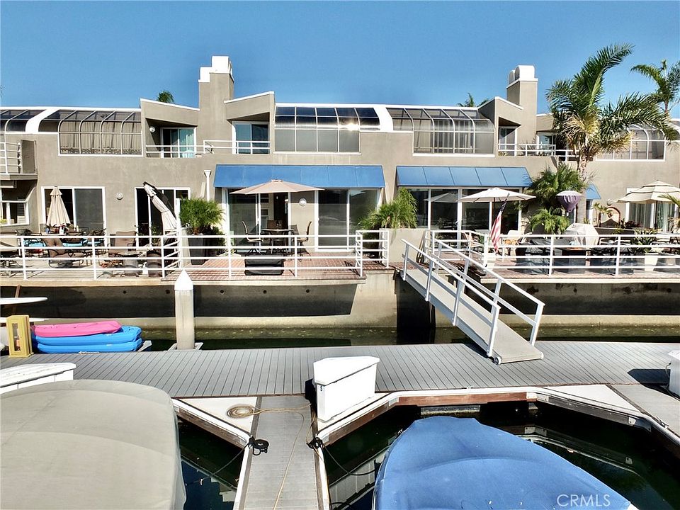 Opportunity is knocking. Pride of ownership Huntington Harbour townhouse situated on the waterfront with private deeded 30' boat slip directly in front. Close ocean access & terrific views from large brick patio & best south facing orientation in popular SeaBridge gated community offering a year round heated pool & spa, club house, gas BBQ area, Tennis & Pickle Ball courts & lovely well-maintained landscaping throughout. Perfect community to live the Southern California lifestyle & quality upgrades throughout make it MOVE-IN condition. Lovely new Quartz counter tops in all bathrooms with new sinks, faucets & quality comfort level elongated toilets plus new bath plumbing from the walls out. Water-proof vinyl plank floors upstairs and on stairway & lovely tile flooring downstairs. Patio has easy care irrigation system on timer & direct access to dock. New KitchenAid stainless steel appliances including double convection oven & convection microwave, side-by-side refrigerator with ice maker & nice Corian counter tops. Recessed lighting in kitchen & dining room & new 2" blinds throughout. Excellent new custom wet bar with large ice-maker in living room providing entertainment enjoyment with easy access from kitchen & patio & all the ice you need for boating & entertaining activities. Large area of built-in shelves & cabinets on either side of fireplace in living room for ample storage as well as 2 walk-in closets upstairs & additional large closet downstairs.