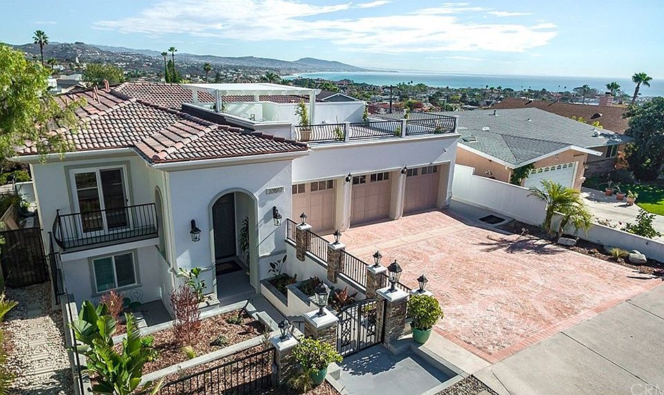 Panoramic Ocean Views! NEW! NEW! NEW! Built 2016. NEW! NEW! NEW! constructed custom home on one of Dana Points highly coveted streets in the Lantern District. Street to street location. This 2 story executive home boasts 5 bedrooms 5 baths. Ensuite bedrooms in upper and lower levels. Master bedroom and master retreat on lower level with outdoor patio and ocean views. Spacious Open kitchen with Dacor appliances, ample quartz counter space, sliding glass doors leading to the balcony enjoying fresh ocean breezes. Decorative high tech electronic fireplaces. High ceilings, crown molding, engineered wood floors. Entertainers delight with approximately 600 square feet of roof top deck with shaded area, expansive white water coastal ocean and city lights views. 3 car garage, elegant curb appeal with custom design brick driveway. Exquisite hardscape and landscaping throughout. This is a must see!! Walkability and conveniently located near Salt Creek Beach, Dana Point Harbor, Five star hotels, restaurants and minutes away from Laguna Beach.