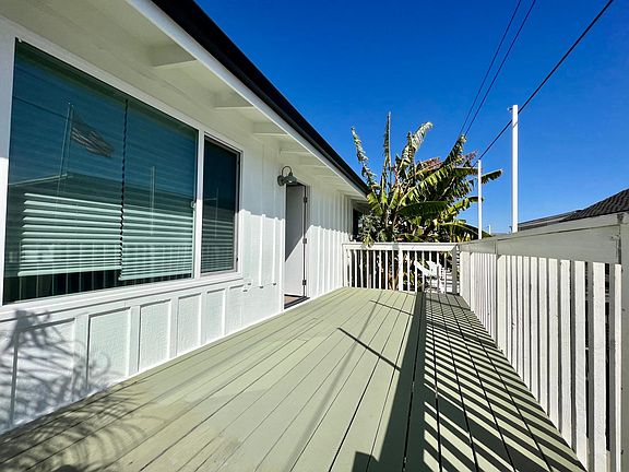 No shared walls! Enjoy your own house with front yard, private deck and driveway parking! Just remodeled bathroom. Kitchen is updated with shaker cabinets, quartz countertops and stainless steel appliances. Ceilings are vaulted with exposed beams throughout the house. Wood luxury vinyl plank flooring throughout. In unit laundry. It's in a great neighborhood in the lantern village, with beach and harbor within walking distance. Owner pays for water. No smoking-NO EXCEPTIONS. First, last and security deposit due at signing.