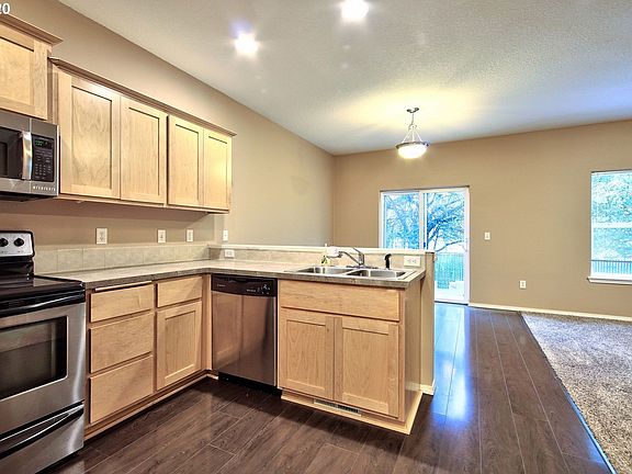 This home is move in ready! Open Floorplan featuring a gas fireplace in the cozy living room. Master suite with walk-in closet and double vanity. The spacious laundry room includes a window that allows natural light and is on the 2nd level of home located by the bedrooms. Sliding door off the dining area that lead to patio and fenced backyard.