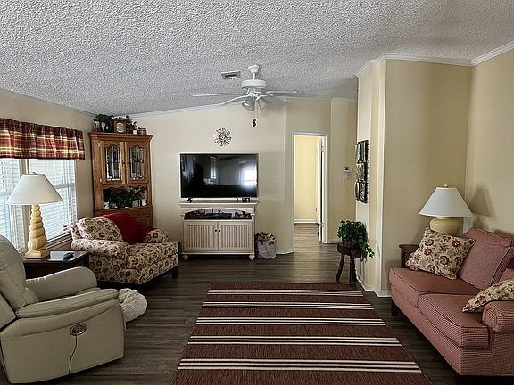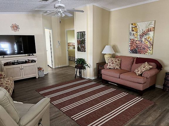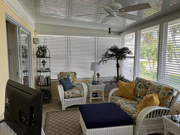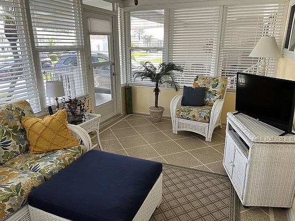 3 BR 2 BA open floor plan. 1344 sg ft. New double pane windows throughout. All newer stainless steel kitchen appliances, new sinks and faucets, new counter tops in. New tile flooring and new laminate throughout. New ADA toilets in both bathrooms. Glassed in Florida Room with AC. Brand-new walk-in shower, Walk in closet in master bedroom. Brand new door and storm door in laundry room. New Roof , AC in 2018. Full house generator. Large golf cart shed with shelves for storage.