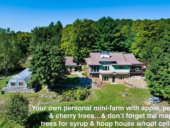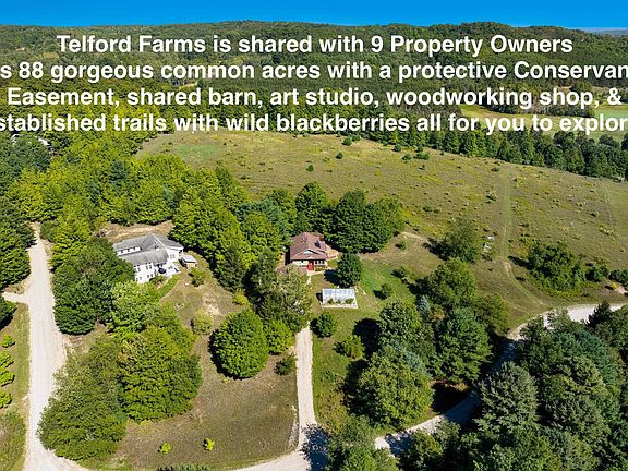 Welcome to Telford Farms! Experience...this ultimate "Green Build style" quality home is centrally located in the charming community of Cedar near the lakes & villages offering the perfect balance of tranquility & convenience! 3 bedroom, 3 bath, built with the absolute best materials, solid oak doors, maple floors locally sourced, cork flooring, zoned speakers, abundant Pella windows & the sweetest enclosed porch. Upscale mechanicals & top of the line boiler system including in-floor heat on both floors. This property will WOW you. Warm & inviting throughout, w/extensive built-ins, barn wood accents/cabinetry, soapstone wood stove, comfortable room sizes, wrap around cedar & redwood decking. This home will charm you with straw/clay construction, mineral paint on the exterior-waterproof-no VOC Keim paint, solar tubes for domestic water, 12" breathable walls, Durisol foundation, nestled in a picture-perfect pastoral setting with a hoop house, over the top garage & inviting private outdoor areas with a pergola for shade. The home was designed by original owner/builder Ellen Fred in conjunction with Larry Kinney and Thomas Hirsch Of Harmony Homes Construction LLC,. The attention to sustainability & energy efficiency is evident in every aspect of the design, making this property not only beautiful, but also environmentally conscious. Nothing to do but enjoy rural living with options to enjoy shared acreage with a vintage barn, outbuildings, hiking trails, gardens, sauna & vineyard views with 8 other owners. Simply a very special offering as you haven't seen anything like this with such a protected setting. Development is simply not an option! Enjoy low maintenance rural living with 80+ acres in joint ownership surrounding 9 home sites. Affordable $150 per month HOA fee covers shared maintenance for the roads & taxes for the Conservancy protected acreage.
