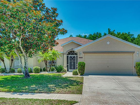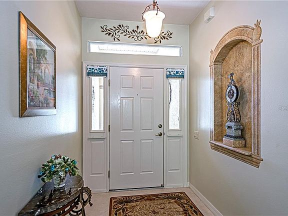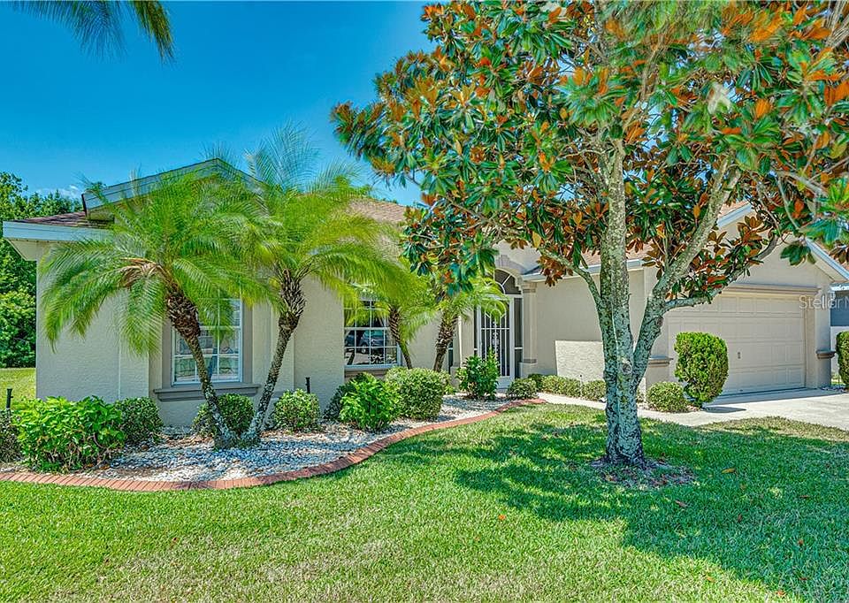 A carefree lifestyle awaits you in Carillon Lakes in this beautifully maintained original owner home. You enter the home through the screened front entry into a foyer that opens to the living room, dining room and kitchen with breakfast bar seating. The living room opens to a screened lanai that overlooks a wooded area affording total privacy. The kitchen features granite countertops, extra tall cabinets, a built in desk that overlooks the private back yard, a sliding window for pass through to the lanai, gas range, corner cabinet with Lazy Susan, new dishwasher and new garbage disposal. The floor plan features 3 bedrooms and an office/den off the living room. The spacious master bedroom is a dream and has an14x5 walk in closet and 12x12 master bathroom with double sinks and vanity, garden whirlpool tub and a separate shower. There is also a sliding door to the lanai from the master bedroom. The hallway has a spacious feel and features a lighted decorative niche and outlet. The a/c was replaced in 2018 and a Reme Halo Generator advanced oxidation system was added at that time. There has never been a pet or smoker living in this immaculate home. Lawn Maintenance is included in the HOA dues. All this including the wonderful Carillon Lakes amenities that features a 24 hr guard gate, beautiful Clubhouse with Junior-sized Olympic POOL and heated spa, fitness center, craft and card rooms, library, billiards room, lighted tennis, basketball and pickle ball courts, walking trails, playground, and boat ramps for small non motorized craft and fishing. Conveniently located near the Polk Parkway with easy access to Tampa and Orlando.