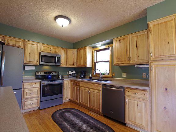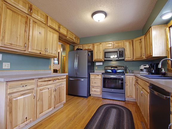 Fantastic 4 bedroom, 2 bath home conveniently located on the outskirts of Bemidji near the High School. Home features natural woodwork, bright living room with wood fireplace, hickory kitchen, stainless appliances, additional family room with gas fireplace, and large screen porch. Includes double detached finished garage, paved driveway, storage shed, extensive perennial gardens and fenced raised garden bed area. Centrally located but feels like you're way out in the country!