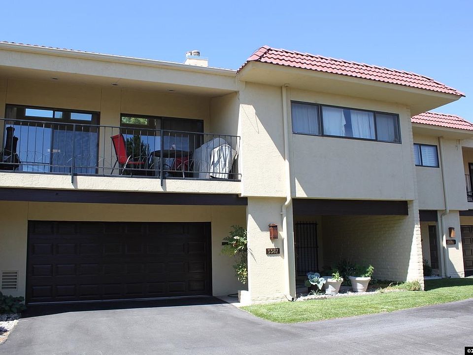 This 3 bedroom, 3 bathroom, and 2 car garage townhouse is located in Southwest Reno near McCarran Boulevard for easy driving access to all that Reno has to offer. This spacious residence has plenty of natural light throughout and is only steps away from the pool and tennis court. Enjoy the mountain and valley views from the covered balcony deck. The downstairs bedroom is finished with its own bathroom and shower with an adjoining bonus living area with a wet bar.
