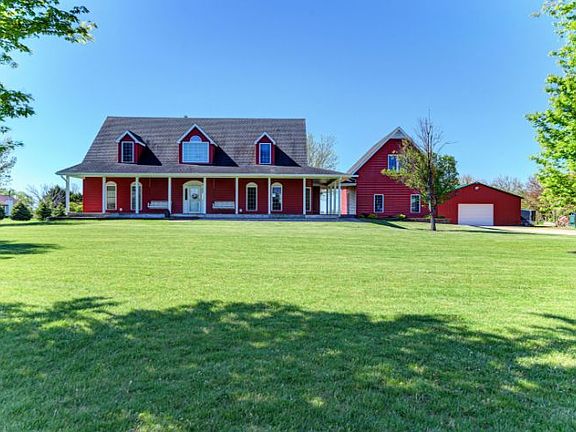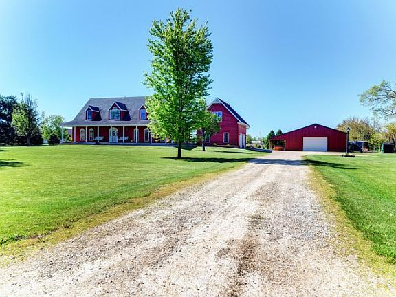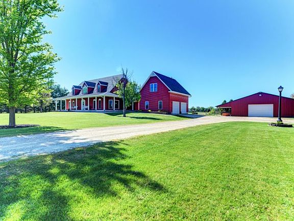 What a perfect setting!! Pond and pasture views from this 3500 sq ft home. Home boasts 4 bedrooms, 3 and 1 2 baths, oversized 2 car attached garage. Beautiful main floor master bedroom and master bath. Master bath has a heated jetted tub. Cathedral ceilings, kitchen island, walk in closets, ceramic flooring, brand new carpeting, central vac, and main floor laundry. Grounds include 4 acres with a stocked pond and mature trees. Let's not forget the 80 x 40 outbuilding. 45 x 45 of the work shop is heated with the remaining being cold storage. Shop has a car lift, LED lighting, water supply, water softener, and a Heatmore wood boiler. This boiler system could also be used as a supplemental heat source for the home. Enjoy the hot tub under the shop lean to. Studio apartment above the attached garage includes the 4th bedroom, 3rd full bath, and a kitchenette. Perfect for an in law suite, that returning college student, or guest quarters. Schedule your showing today.