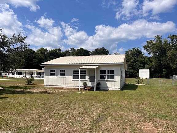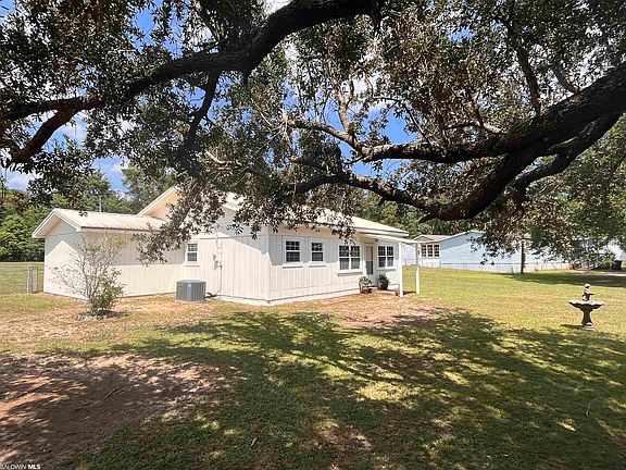 MAJOR PRICE REDUCTION! SOLD AS IS. Charming coastal cottage with partial OWNERSHIP of private beach on Perdido Bay! Perfect as a primary or second home, this 3 bedroom 1 full bath cottage is the definition of bright and open-concept living. As you enter the home, the living/dining/kitchen area opens up in front of you. The cathedral ceiling creates a sense of added space while the newly painted walls (inside & out) and new floors make the cottage feel both fresh and sophisticated. The open layout makes the space easy to navigate and seems larger than it is. Double-pane windows provide lots of natural light while helping to keep the power bills down. A separate shower room sits right off the kitchen & back door. The primary bedroom has paneled walls and shiplap ceiling. The cottage sits on a partially-fenced 1/2+ acre lot with ample room for your boat(s), RV, garden, citrus trees, or a pool. So much room to make it the coastal oasis you envision! A large 12x12 shed provides additional storage space. Upgrades/updates include interior & exterior paint - house & shed (2023); new floors (2023); TRANE air conditioner (2021); water heater (2021); PEX whole-house plumbing (2021); double-pane storm windows (2012); metal roof (2009); and new septic lines (2009). The home comes with all appliances, including washer & dryer, Craftsman riding lawnmower and Husqvarna weed eater. PRIVATE PARK & BEACH: The cottage has 1/50th ownership of the Lillian Heights Park & Beach. Along with the other homeowners in the Lillian Heights subdivision with NO HOA, you have exclusive rights to & use of your private beach. Ride your golf cart to the beach or launch your boat from the Lillian Boat Launch less than a mile from the house and access the beach by boat. More than a cottage, it's a way of life in coastal Alabama!